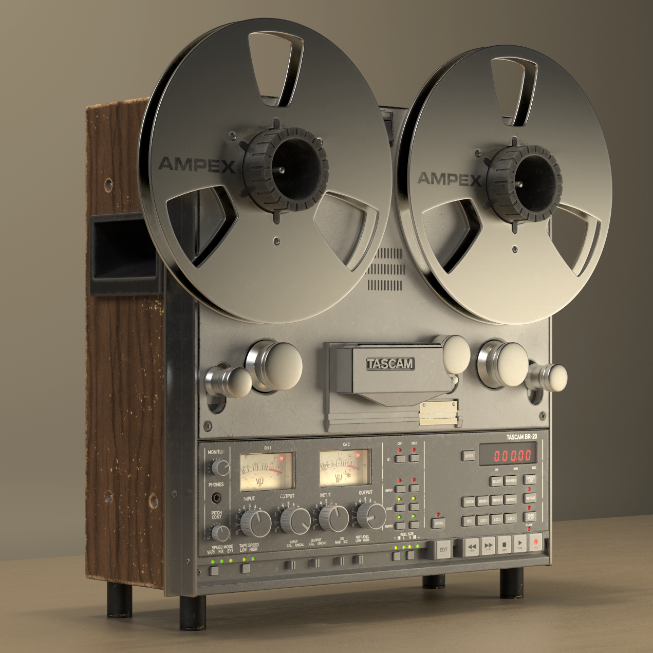 Modeling, texturing and rendering of the Tascam BR-20 reel to reel.